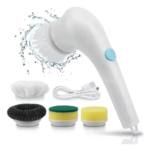 Decile adiós al fregado pesado. La Magic Brush 5 en 1 incluye 5 cabezales intercambiables (esponja, lana de acero, pulidor, microfibra y fibra abrasiva) para dejar cualquier superficie impecable.
